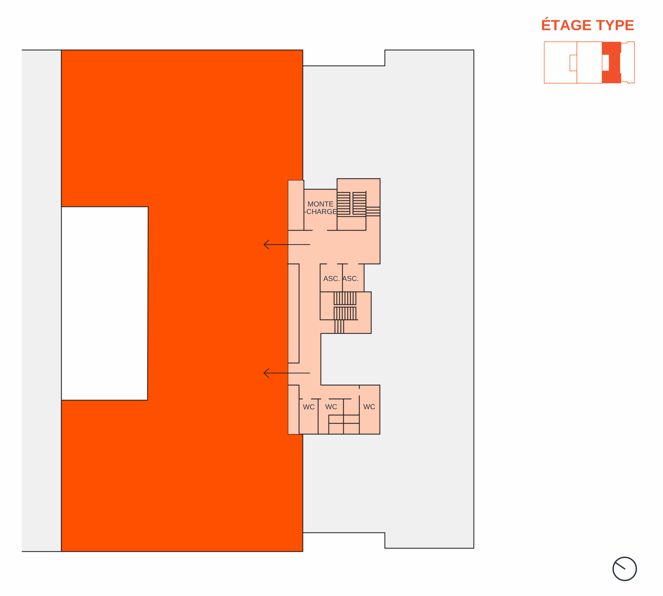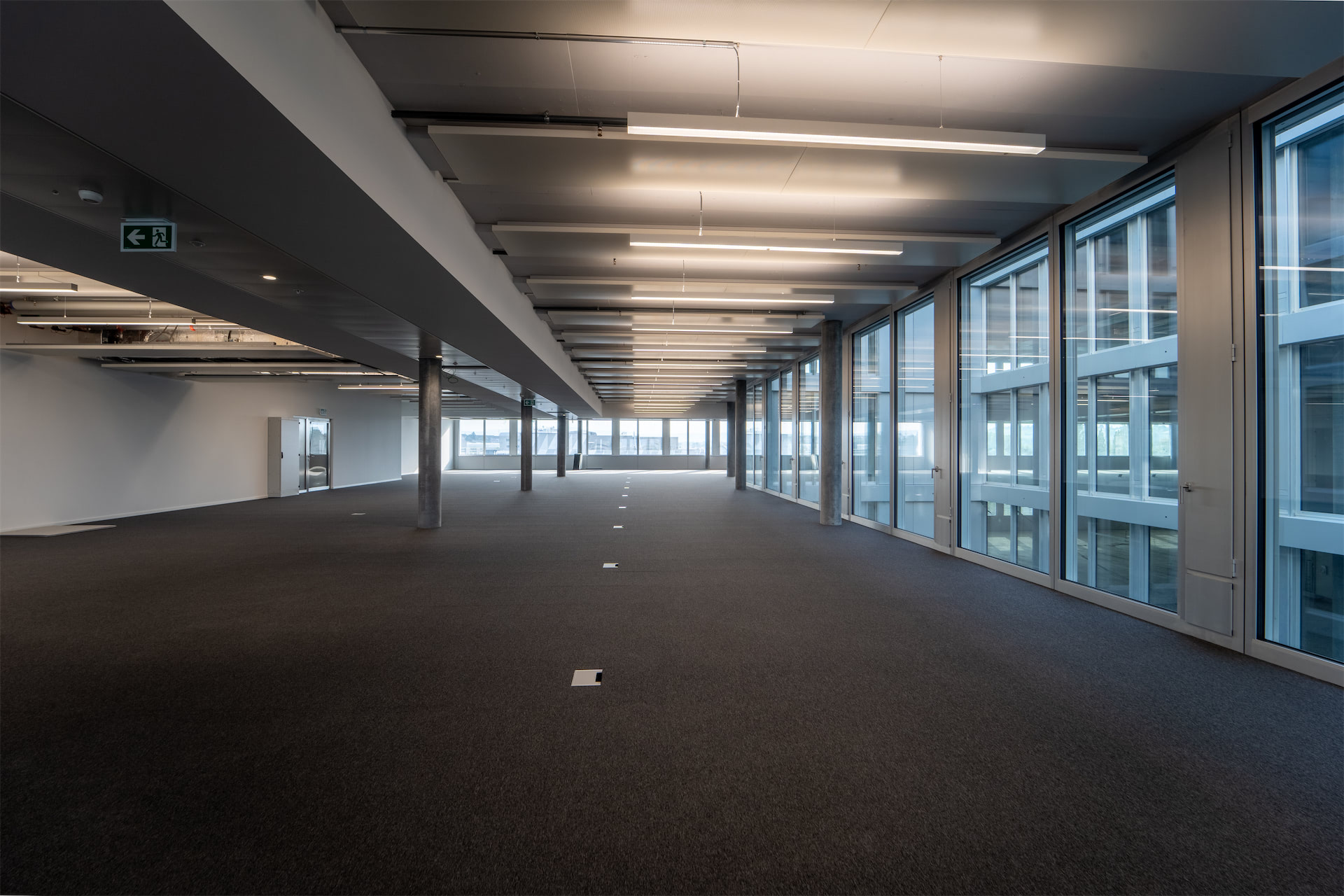 Les plateaux, baignés de lumière naturelle, offrent une hauteur sous plafond de 3,6 mètres et des possibilités d’aménagement variées : open spaces, bureaux cloisonnés, zones techniques ou mixtes.